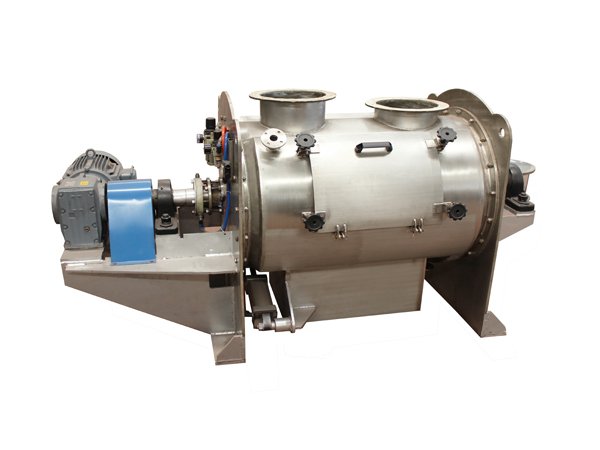 该机型由传动机构、卧式筒体、犁刀、飞刀四部分组成,物料在犁刀作用下沿筒壁做轴向流动,当物料流经飞刀时被高速旋转的飞刀抛洒,从而在较短时间内达到均匀混合。