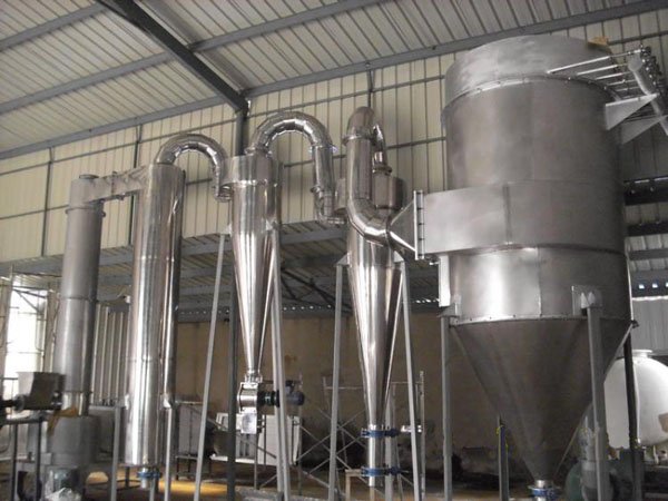 气流干燥机是利用高速流动的热气流使湿淀粉悬浮在其中,。具有传热系数高,传热面积大,干燥时间短等特点。气流干燥也称“瞬间干燥”是固体流态化中稀相输送在干燥方面的应用。该法是使加热介质和待干燥固体颗粒直接接触,并使待干燥固体颗粒悬浮于流体中,因而两相接触面积大,强化了传热传质过程,广泛用于散状物料的干燥单元操作。